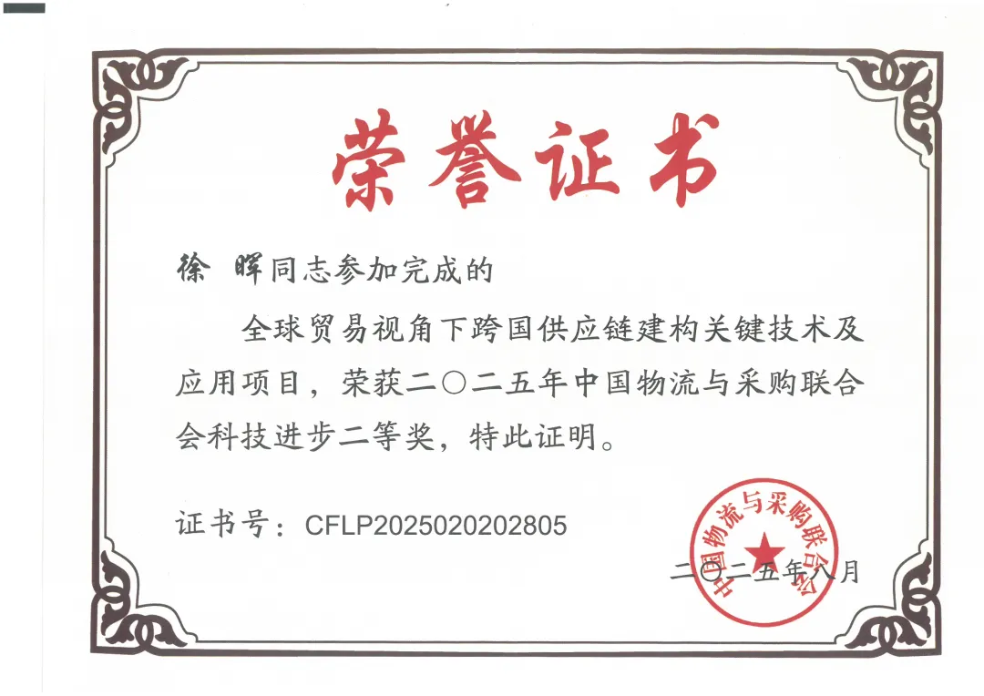 近日,中国物流与采购联合会公布2025年度科学技术奖项目奖获奖名单。浙江网塑科技股份有限公司(以下简称“我司”)作为主要完成单位之一,与宁波财经学院、浙江工商大学、杭州杭丝时装集团有限公司联合申报的《全球贸易视角下跨国供应链建构关键技术及应用》项目从上千份项目申报材料中脱颖而出,荣获科技进步奖二等奖。